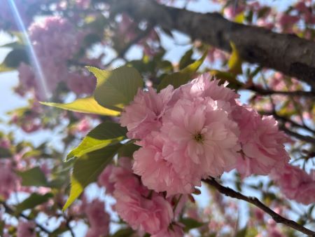 每當春風初度,櫻花便如喚醒的精靈,在枝頭悄然綻放。它們似乎聆聽到了春的密語,急不可耐地舒展枝葉,從嫩綠中探出頭來,羞澀而好奇地打量著這熟悉而又陌生的世界。起初,僅是零星幾點粉嫩的點綴,在褐色枝干間若隱若現(xiàn),宛如少女臉上的羞澀紅暈,引人憐愛。然而不過幾日,春風輕撫,那些沉睡了一個冬天的櫻花樹仿佛被魔法喚醒,瞬間綻放出積蓄已久的生命力,將整顆樹渲染成一片絢爛的花海。細觀每一朵櫻花,都猶如大自然精心雕琢的藝術珍品,五片花瓣輕如蟬翼,細膩柔滑,邊緣微微卷翹,宛如天工開物?;ò甑纳蕪幕ㄈ锵蛲鉂u變,由深至淺,恰似晚霞映照天邊的溫柔與魅惑。櫻花之美,不僅在于它的嬌艷動人,更在于它短暫卻絢爛的生命?;ㄆ陔m短,卻毫不保留地展示自己的魅力,將一冬的蘊藏,在這短暫春光中盡情釋放。